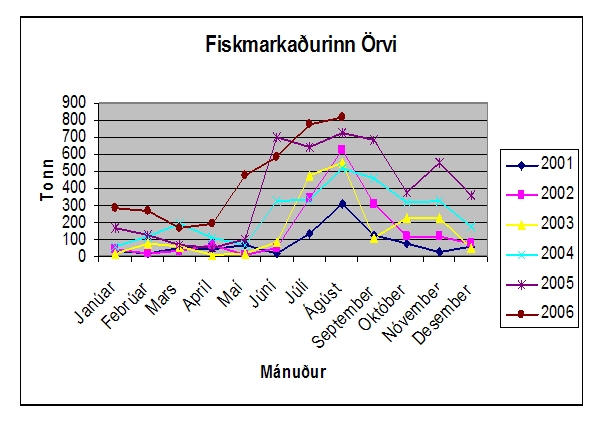 Sala fiskmarkaðarins hefur aukist jafnt og þétt á undanförnum árum eins og sjá má á meðfylgjandi línuriti. Þá hefur hlutfall ýsu í sölunni vaxið mjög frá árinu 2002 og það sem af er þessu ári er sala á ýsu orðin meiri en á þorski.