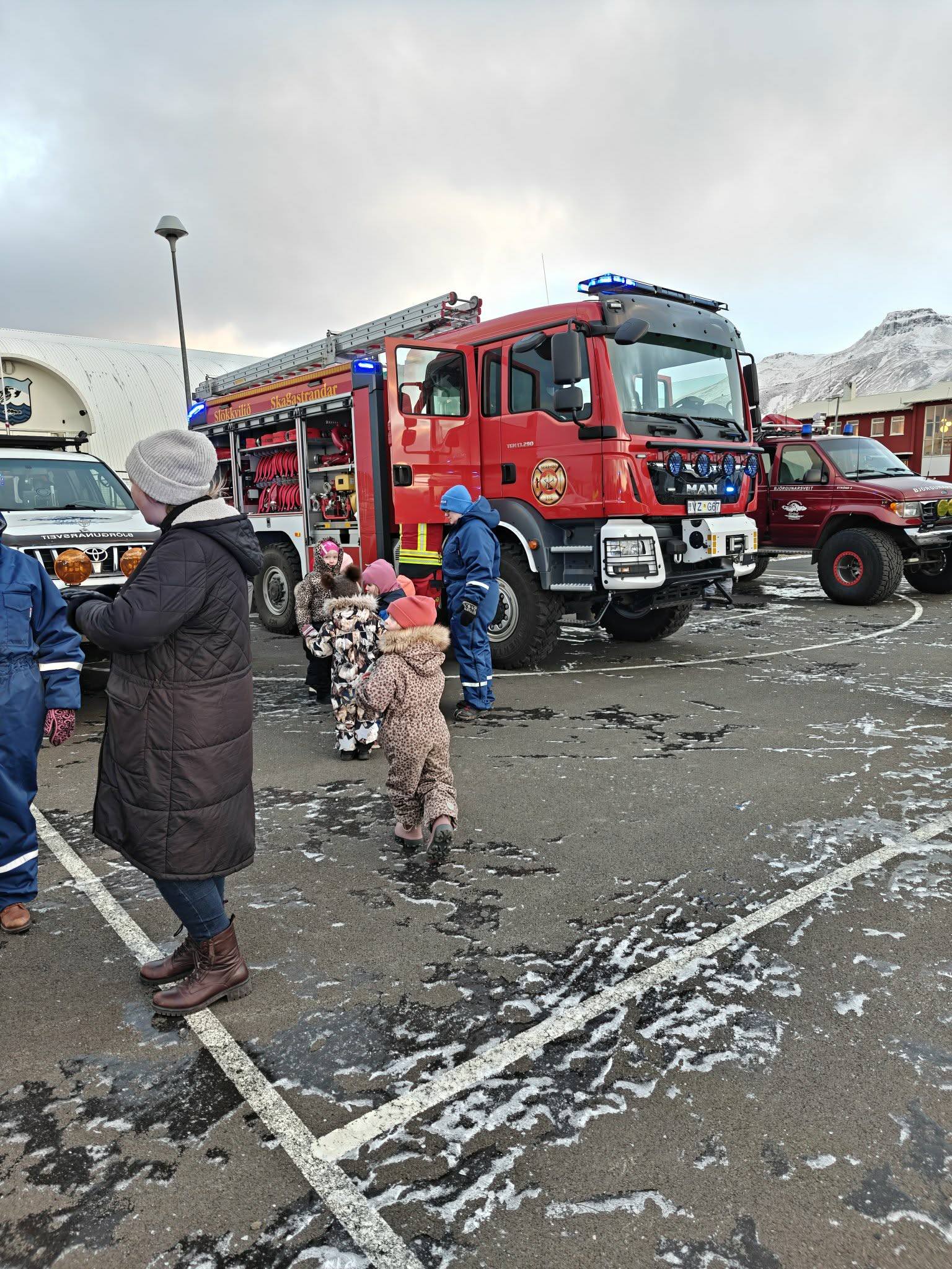 112-dagurinn fór einnig vel fram á Skagaströnd. Hópakstur viðbragðsaðila vakti athygli og gleði, og börn fengu tækifæri til að skoða tæki og búnað við íþróttahúsið.
